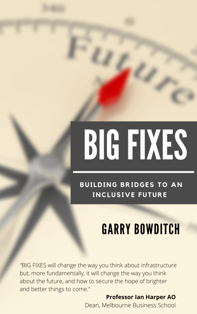 Bowditch investigates why modern decision-making is failing to deliver for people and businesses a more confident and optimistic outlook for the future, especially when there is an abundance of money and capability. A key thread in the BIG FIXES conversation speaks to building the quality of leadership in institutions and the community sector. At the core of Bowditch’s book, is an urgency to commence rebuilding trust – especially between people and institutions – and the importance of having more accountability for the long-term consequences flowing from decisions.